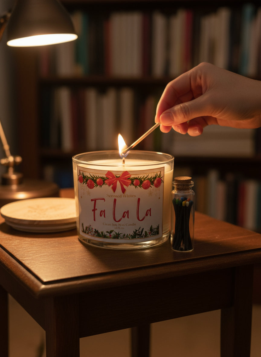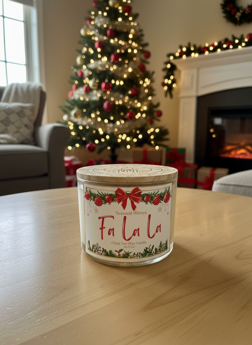 The wait is over — the Scented Whites Falala Candle is here! This 3-wick, 1 lb soy candle is infused with Fraser fir, peppermint, and eucalyptus, creating a crisp, clean scent that captures the spirit of the season.