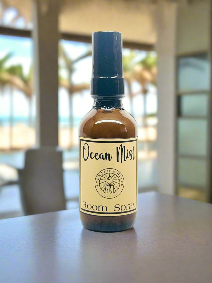 Refresh your space with Scented Whites Ocean Mist Room Spray (2 oz). This compact spray blends bergamot, sea salt, peony, mint, light and musk, notes for a clean, airy fragrance. Made with Polysorbate 20 and distilled water, it’s safe, non-toxic, and perfect for any room.